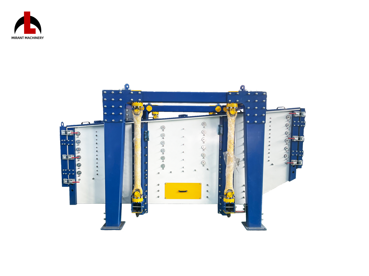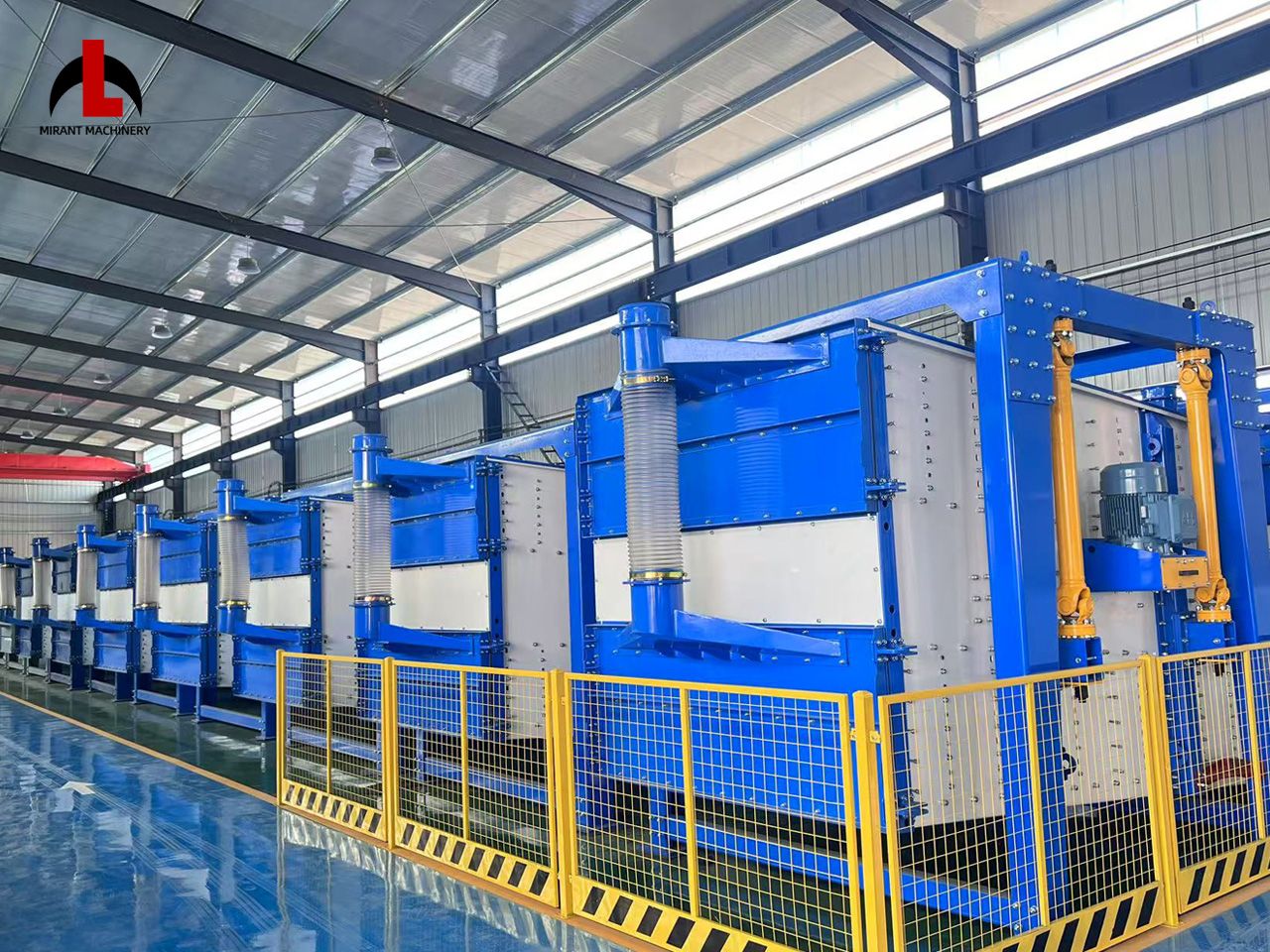 Mirant Gyratory Sifter simulates the motion of human hands sieving, combining "sieve" motion (planar circular motion) and "dustpan" motion (throwing materials upwards), which can quickly spread the material across the full width of screen at the feed end and drive the particles moving forward to touch the screen surface with high capacity and high efficiency.