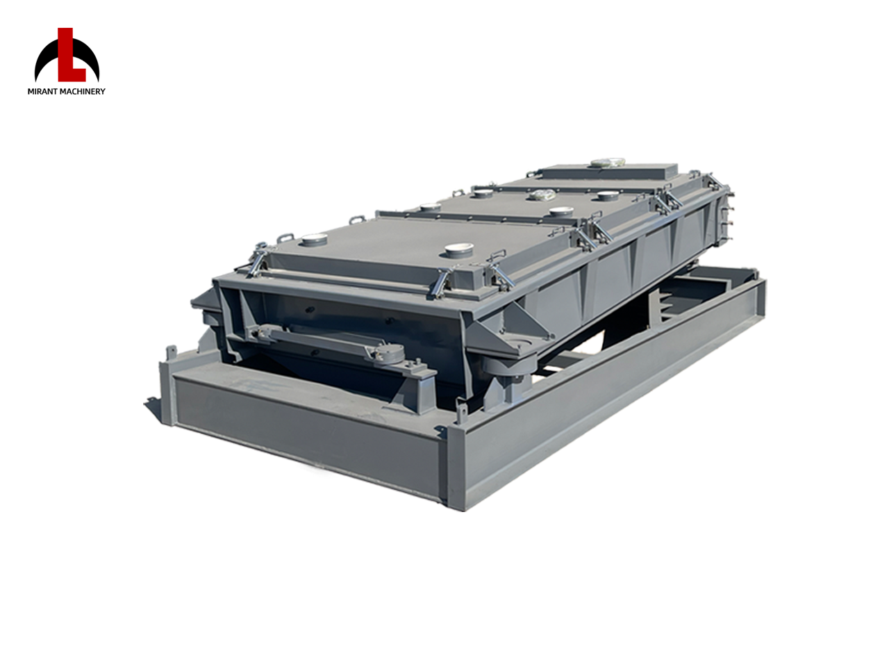 Mirant Gyratory Vibrating Screener (Flat Rotary Screen) is currently an effective screening machine that simulates the principle of artificial screening motion. It is mainly achieved by the movement of the eccentric machine. It is a uniform reciprocating rotary motion with an inclination angle of 3°-9°. Through the drive transmission chamber screen box, the material moves in a horizontal circle at the feed end, gradually becomes an elliptical motion in the length direction, and becomes an approximate reciprocating linear motion at the discharge end. After the material enters the screen body through the feed port, it can be evenly distributed on the screen surface of the compound vibrating screen under the action of inertial shaking force, and the material with smaller particle size under the material layer can quickly pass through the screen, while the material with larger particle size moves to the discharge end on the top, thereby achieving a high-efficiency and high-precision screening effect.